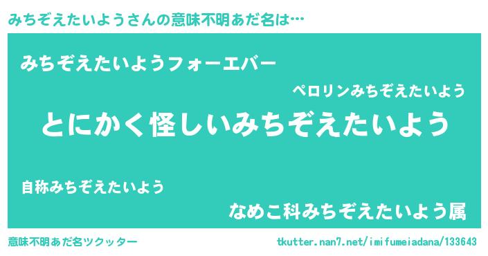 | 伝説のあだ名 | 『覚醒した僧侶みちぞえたいよう』 |