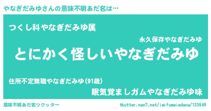 | 料理風あだ名 | 『やなぎだみゆの豆乳スープ』 |