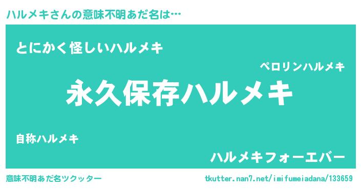 | 男性向けラノベタイトル風あだ名 | 『ハルメキという概念が存在しない退屈な世界 』 |