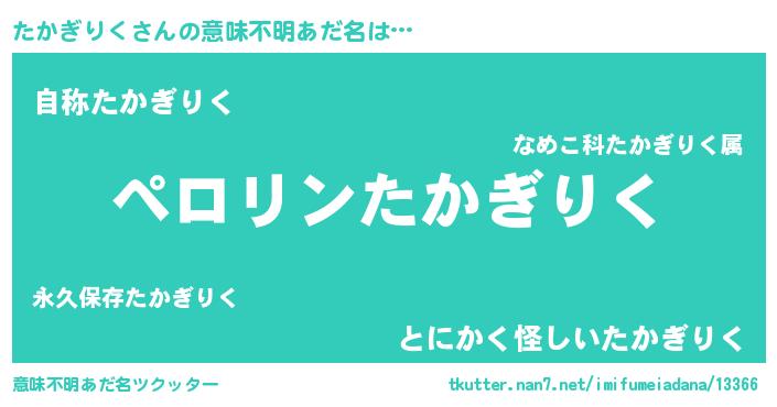 | 欧米人風あだ名 | 『たかぎりく・ステッグマイヤー』 |