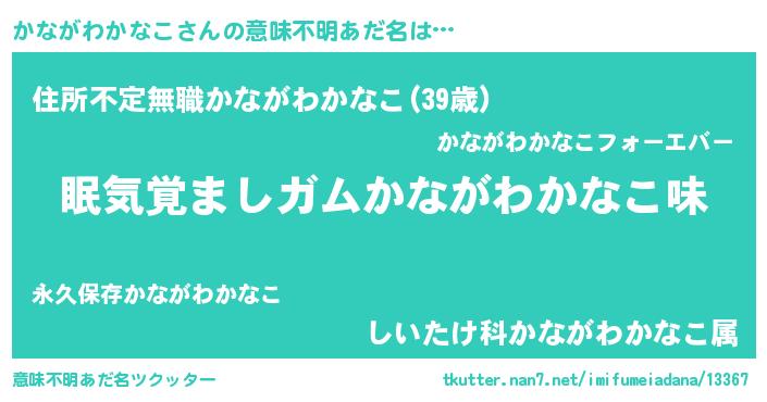 | 男性向けラノベタイトル風あだ名 | 『おまえをオタクにしてやるから、俺をかながわかなこにしてくれ! 』 |