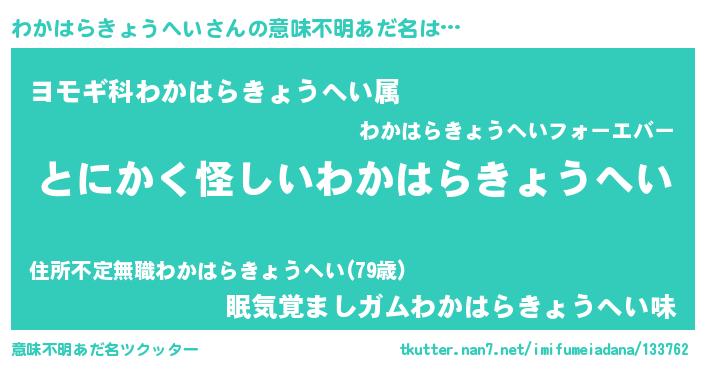 | ポケモン風あだ名 | 『ヒワカハラキョウヘイ』『ワカキング』 |