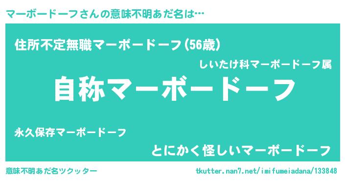 | ヒーロー風カッコイイあだ名 | 『究極戦士マーボードーフ』 |