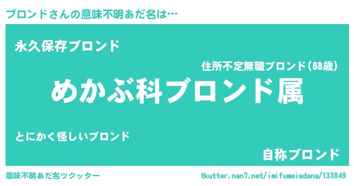 | 胡散臭い通販商品みたいなあだ名 | 『絶対に幸福をもたらす水素水…その名も「ブロンド」』 |