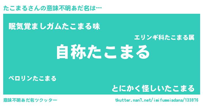 | 男性向けラノベタイトル風あだ名 | 『Re:たこまるから始める異世界生活』 |
