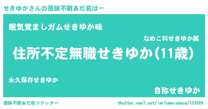 | 欧米人風あだ名 | 『せきゆか・ステッグマイヤー』 |