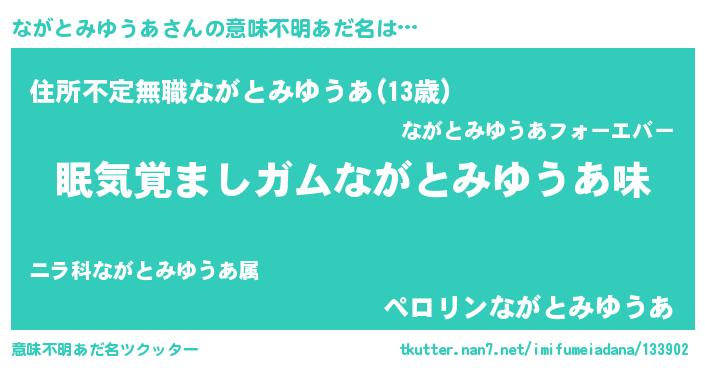 | ヒーロー風カッコイイあだ名 | 『慈愛の使者ながとみゆうあ』 |