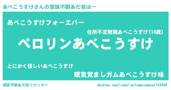 | 男性向けラノベタイトル風あだ名 | 『あべこうすけの憂鬱』 |