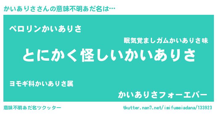 | 胡散臭い通販商品みたいなあだ名 | 『信頼と実績のサプリメント…その名も「かいありさ」』 |