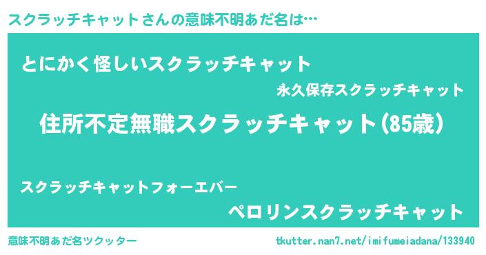 | 男性向けラノベタイトル風あだ名 | 『魔弾の王とスクラッチキャット』 |