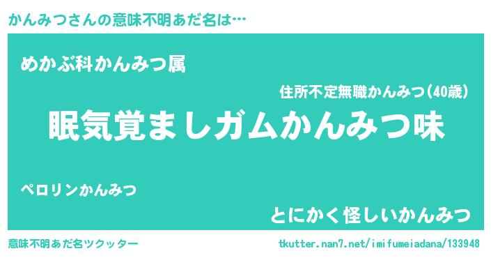 | 男性向けラノベタイトル風あだ名 | 『緋弾のカンミツ』『カンミツスレイヤー』 |