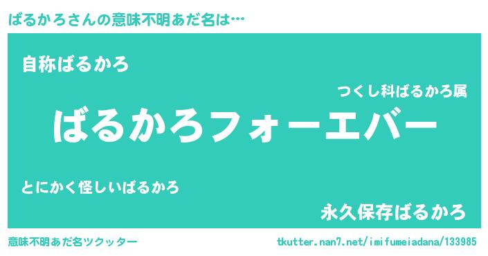 | ヒーロー風カッコイイあだ名 | 『ウルトラばるかろマン』『ネオバルカロ』 |