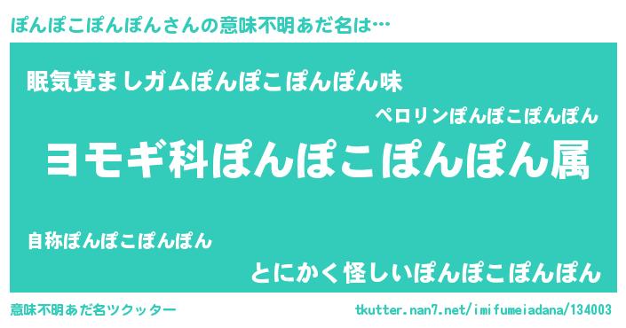 | 男性向けラノベタイトル風あだ名 | 『ぽんぽこぽんぽん~年齢イコール彼女いない歴の魔法使い~』 |