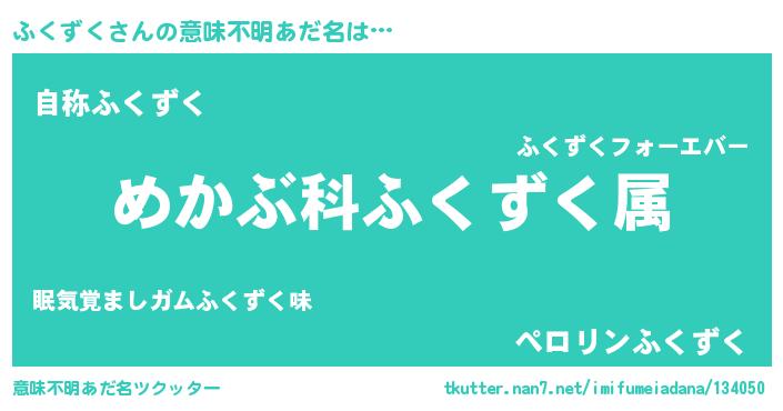 | ヒーロー風カッコイイあだ名 | 『ウルトラ戦士フクズク』『ネオフクズク』 |