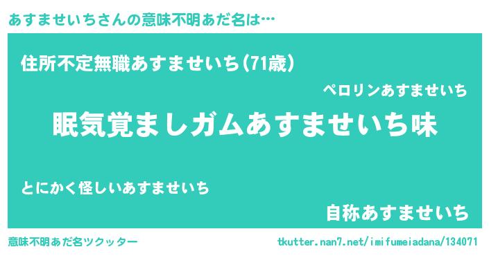 | 胡散臭い通販商品みたいなあだ名 | 『100人中100人が認めたイリジウム磁石…その名も「あすませいち」』 |