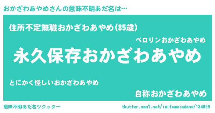 | 男性向けラノベタイトル風あだ名 | 『おかざわあやめという概念が存在しない退屈な世界 』 |