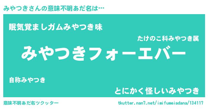 | 欧米人風あだ名 | 『みやつき・ステッグマイヤー』 |
