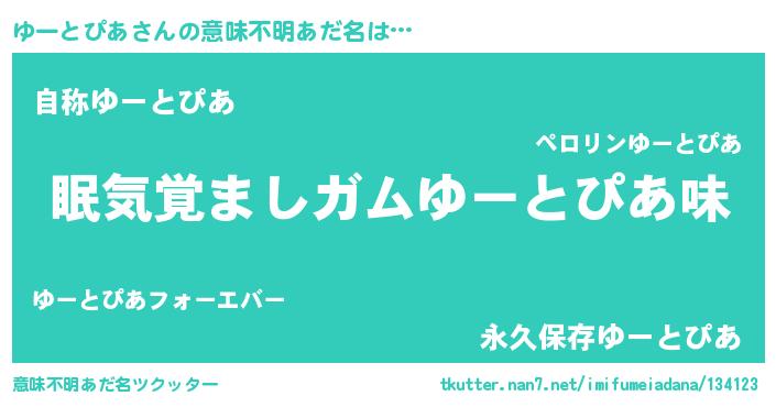 | ヘコむあだ名 | 『ゆーとぴあ(笑)』『ゆーふぇ~』 |