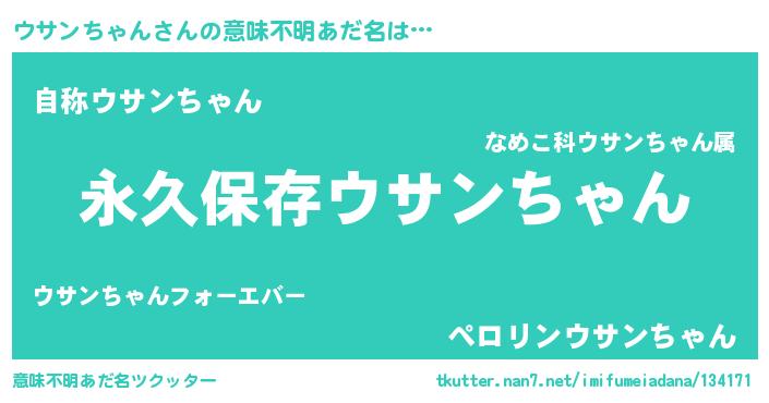 | 男性向けラノベタイトル風あだ名 | 『ウサンちゃんという概念が存在しない退屈な世界 』 |