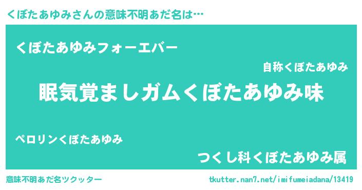 | 男性向けラノベタイトル風あだ名 | 『ノーゲーム・ノークボタアユミ』 |
