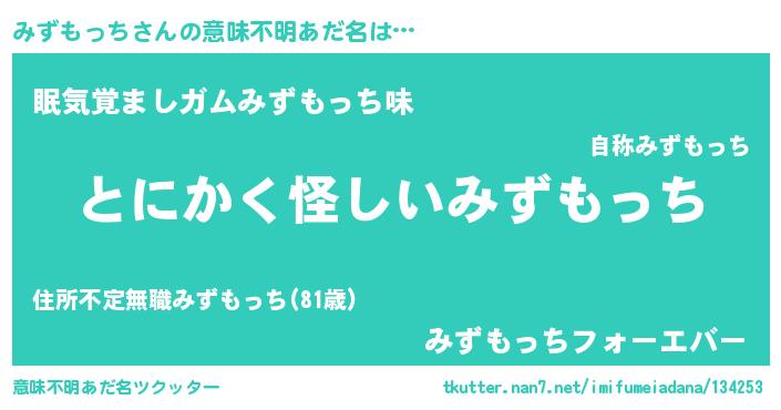 | 女子向けラノベタイトル風あだ名 | 『みずもっちの卵を拾いまして』 |