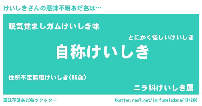 | 肩書あだ名 | 『けいしき閣下』『けいしき助手』 |