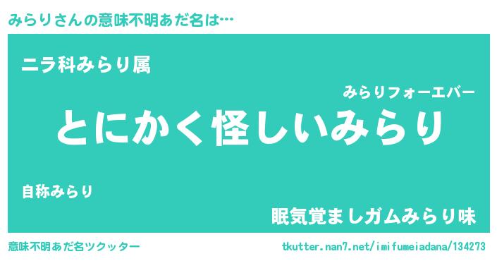 | 肩書あだ名 | 『みらりリーダー』『みらり上級大将』 |