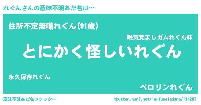 | 胡散臭い通販商品みたいなあだ名 | 『信頼と実績のサプリメント…その名も「れぐん」』 |