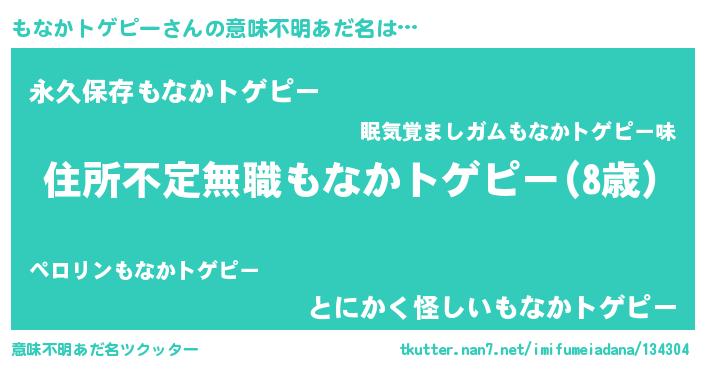 | 男性向けラノベタイトル風あだ名 | 『この素晴らしい世界にもなかトゲピーを!』 |
