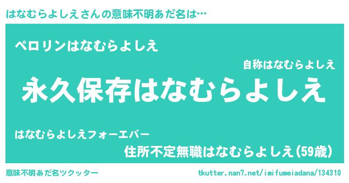 | ヘコむあだ名 | 『はなむらよしえ(笑)』『はなもー』 |