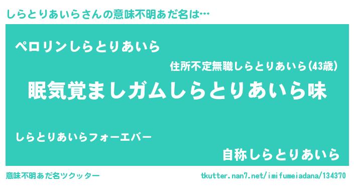 | 男性向けラノベタイトル風あだ名 | 『おまえをオタクにしてやるから、俺をしらとりあいらにしてくれ! 』 |