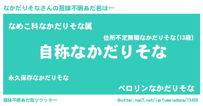 | 女子向けラノベタイトル風あだ名 | 『なかだりそなストレイドッグス』 |