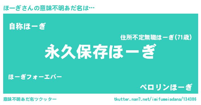 | 男性向けラノベタイトル風あだ名 | 『ほーぎという概念が存在しない退屈な世界 』 |