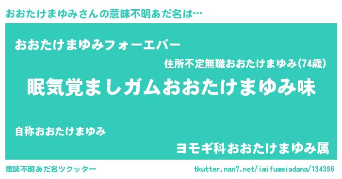 | 男性向けラノベタイトル風あだ名 | 『ノーゲーム・ノーオオタケマユミ』 |