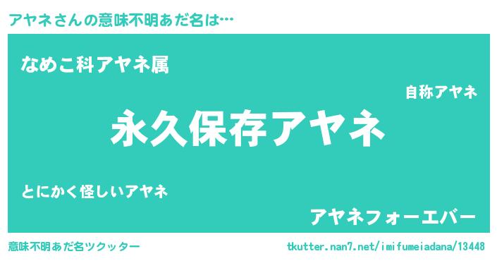 | 男性向けラノベタイトル風あだ名 | 『アヤネという概念が存在しない退屈な世界 』 |