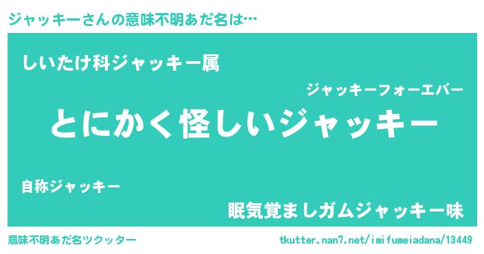 | 女子向けラノベタイトル風あだ名 | 『ジャッキーは平凡を望む』 |