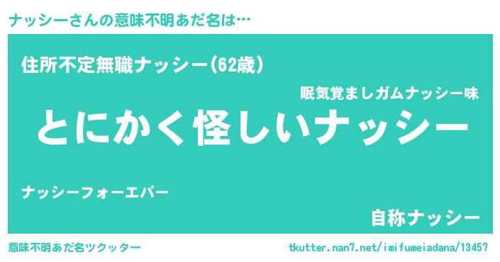| 女子向けラノベタイトル風あだ名 | 『ナッシーは平凡を望む』『闇のナッシー』 |