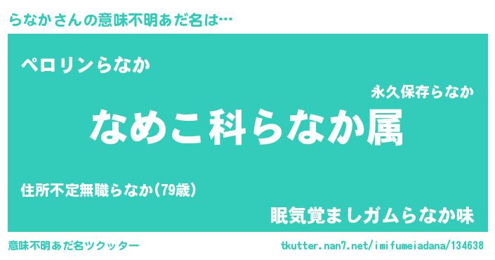 | 男性向けラノベタイトル風あだ名 | 『転生したららなかだった件』 |