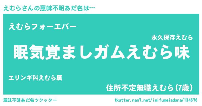 | 男性向けラノベタイトル風あだ名 | 『おまえをオタクにしてやるから、俺をえむらにしてくれ! 』 |