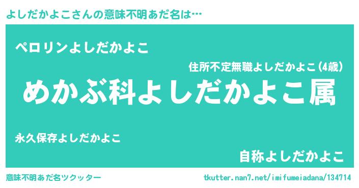 | 男性向けラノベタイトル風あだ名 | 『ヨシダカヨコスレイヤー』 |