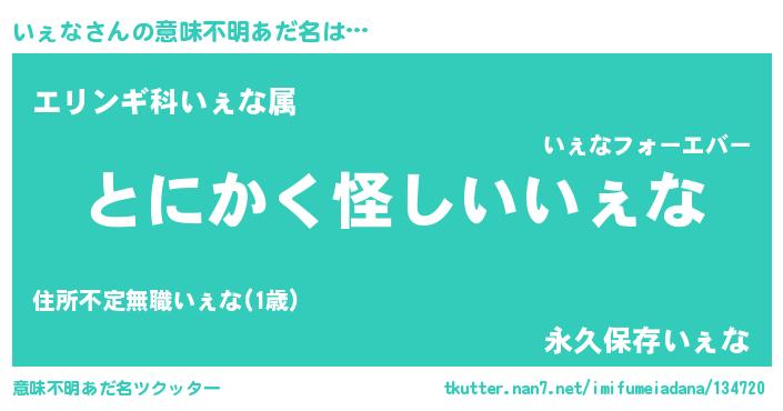 | ヘコむあだ名 | 『いぇお』『いぇな(遠い目)』 |