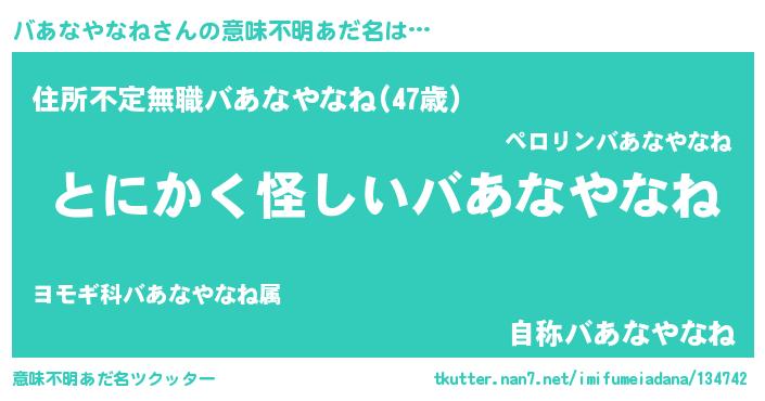 | 男性向けラノベタイトル風あだ名 | 『ダンジョンにバあなやなねを求めるのは間違っているだろうか』 |