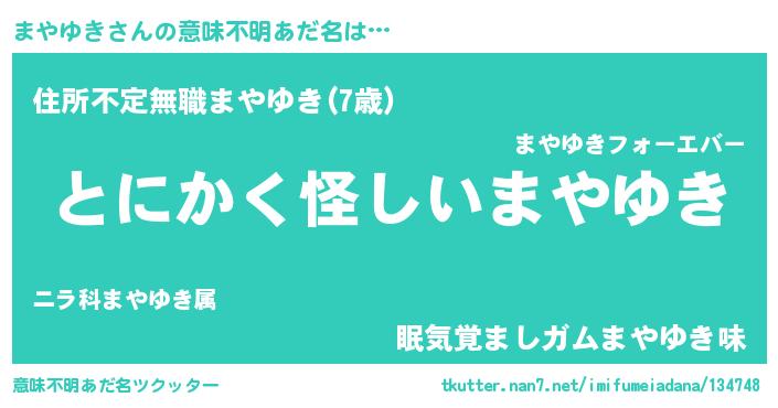 | 男性向けラノベタイトル風あだ名 | 『まやゆきの嫁は女の子じゃないと思った?』 |