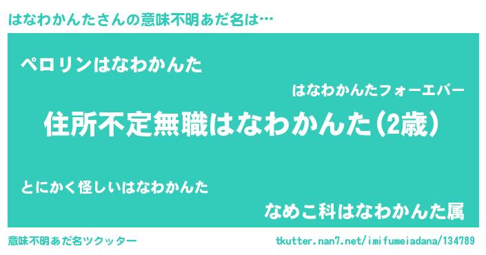 | 男性向けラノベタイトル風あだ名 | 『この素晴らしい世界にはなわかんたを!』 |