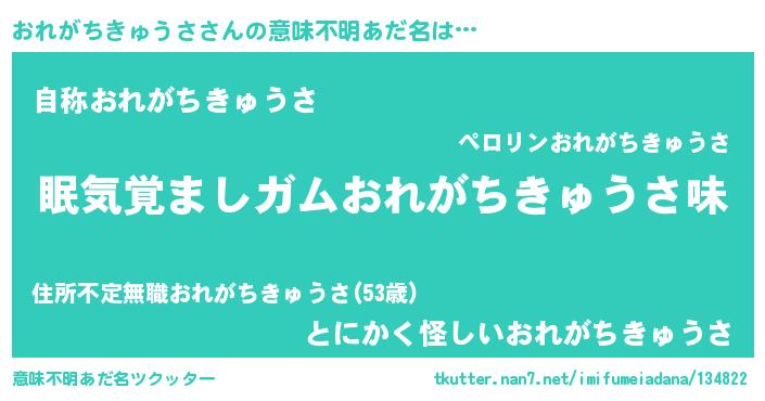 | 男性向けラノベタイトル風あだ名 | 『おまえをオタクにしてやるから、俺をおれがちきゅうさにしてくれ! 』 |