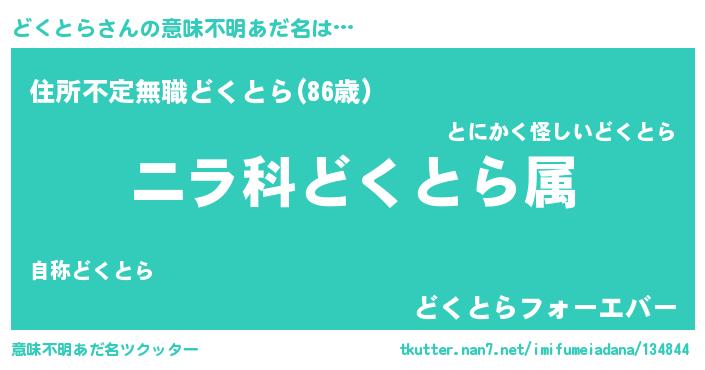 | 男性向けラノベタイトル風あだ名 | 『どくとら~年齢イコール彼女いない歴の魔法使い~』 |