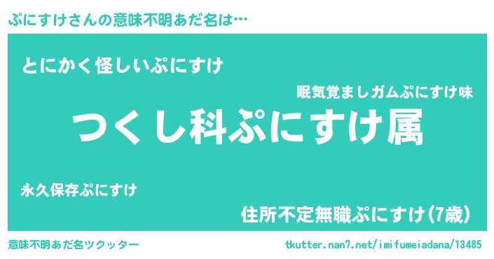 | 男性向けラノベタイトル風あだ名 | 『ぷにすけ~年齢イコール彼女いない歴の魔法使い~』 |