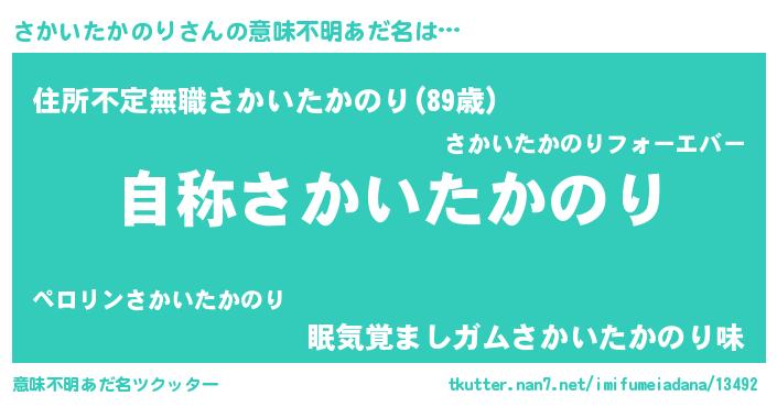 | 欧米人風あだ名 | 『さかいたかのり・ステッグマイヤー』 |
