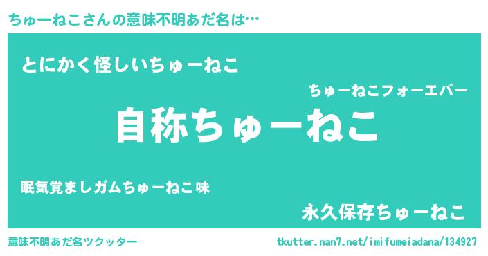 | 男性向けラノベタイトル風あだ名 | 『Re:ちゅーねこから始める異世界生活』 |