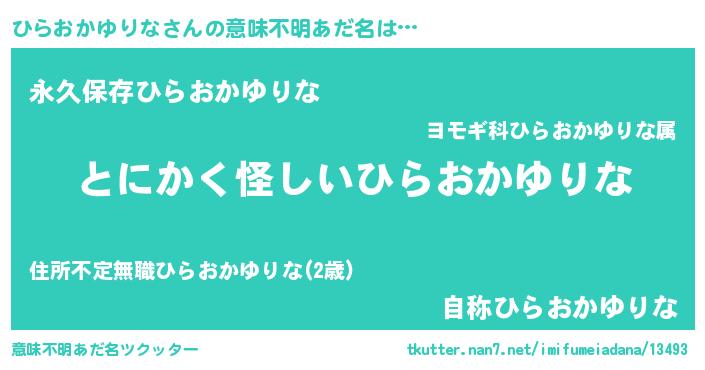 | ポケモン風あだ名 | 『ヒヒラオカユリナ』『メロヒッラ』 |